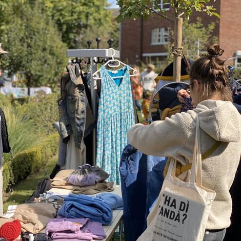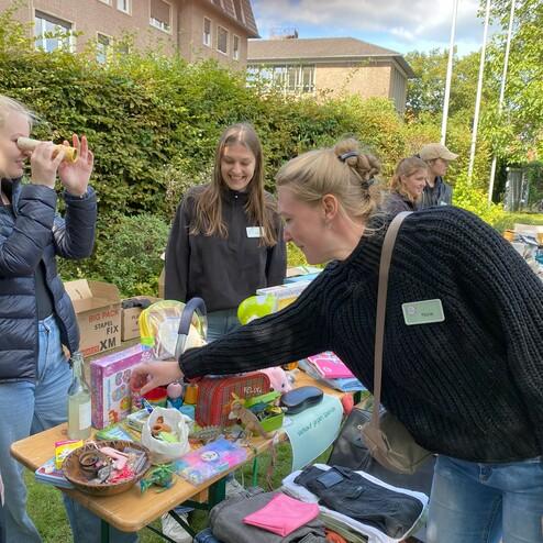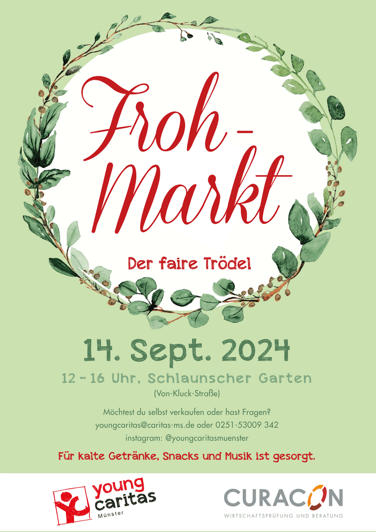 Im September fand der Frohmarkt der youngcaritas zum bereits fünften Mal statt. Bei bestem spätsommerlichen Wetter strömten viele Besucher:innen in den Garten der Caritas im Südviertel. An rund 25 Ständen konnte gefeilscht und gestöbert werden. Ob Kleidung, Möbel, Schmuck, Bücher, Spiele oder Hausrat – hier konnte jede:r fündig werden. Wer am Stand der youngcaritas-Engagierten zuschlagen wollte, konnte die Teile gegen Spende erwerben.