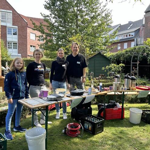 Erneut haben sich dieses Jahr auch Mitarbeitende der Firma Curacon engagiert. Sie sorgten für das leibliche Wohl und versorgten die Gäste mit frischen Waffeln, Kuchen, Kaffee und Limo. Die Wiese mit Bänken und Tischen lud dabei zum verweilen ein.